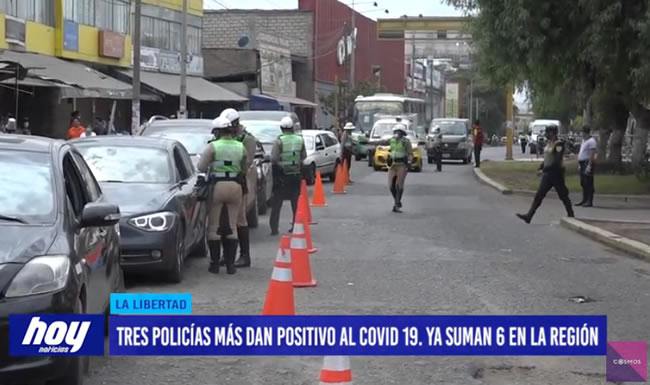 El jefe de la III Macro Región Policial de La Libertad, General Lucas Núñez, informó que ya van seis efectivos policiales infectados con COVID 19. Además, manifestó que espera que las pruebas lleguen cuanto antes para hacer el tamizaje si es posible a todos los policías que están trabajando en las calles en este Estado de Emergencia.