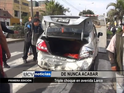 Un nuevo choque tuvo como protagonistas a tres vehículos en plena avenida Larco. La colisión dejó un herido y cuantiosos daños materiales.