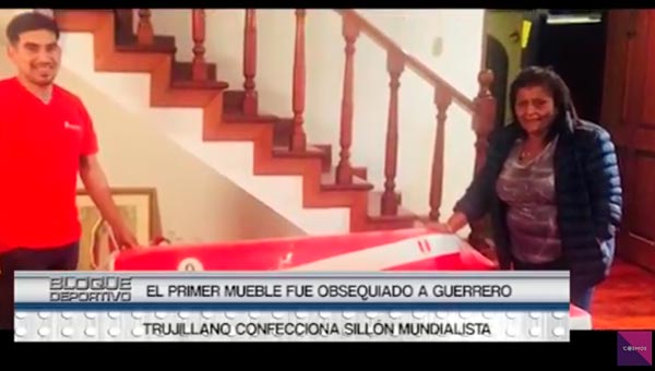 La mamá de Paolo Guerrero fue quien recibió este original obsequio dirigido para el depredador se trata de un sillón mundialista que ha despertado el interés del público por conocer y adquirir este mueble bicolor fabricado nada menos que por un trujillano.