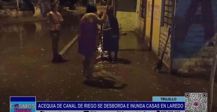 Vecinos del sector Barraza, ubicado en el distrito trujillano de Laredo, se vieron perjudicados por inundaciones en sus viviendas y calles debido a un desborde de la acequia que proviene del canal de riego, causado por malos ciudadanos que dejan sus residuos sólidos, provocando atoros constantes. Los moradores tuvieron que despertar en plena madrugada para retirar el agua.