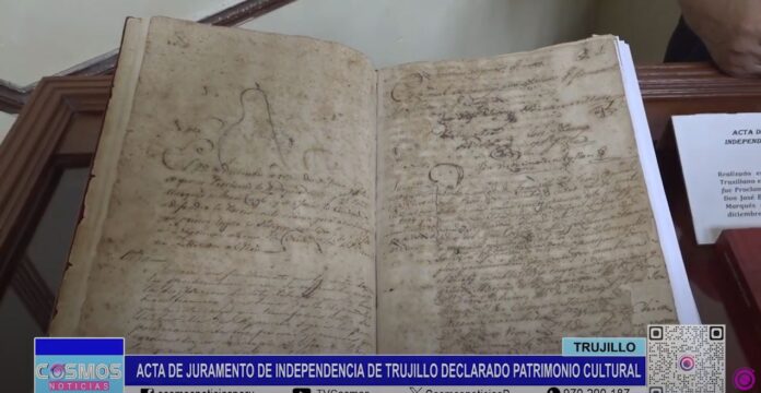 El acta de juramento de la independencia de Trujillo fue declarado patrimonio cultural de la Nación. Este valioso documento quedó bajo custodia del Gobierno de La Libertad a través del Archivo Regional.