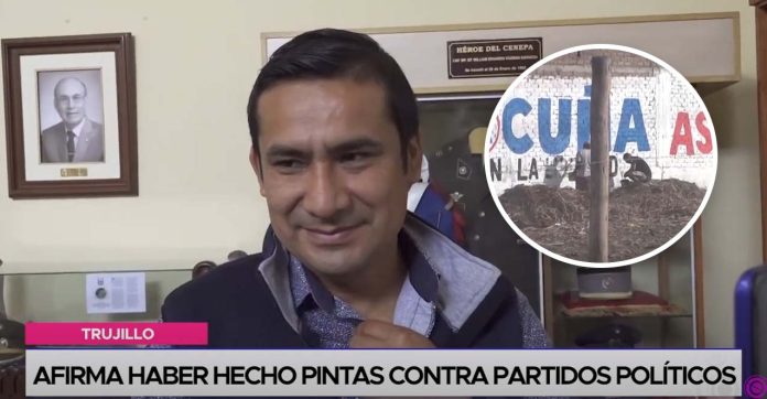 Como se recuerda, hace algunos días personas presuntamente ligadas a la agrupación política Podemos Perú fueron captadas realizando pintas en una pared del sector Santa Rosa, distrito de Moche, incluso se corroboró que el vehículo en el que se trasportaban pertenece al William Guzmán ex candidato a la alcaldía de El Porvenir por la agrupación Podemos Perú. Esta acción fue rechazada por algunos políticos.