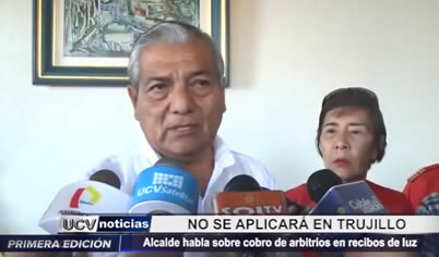 El alcalde de Trujillo, Elidio Espinoza, señaló que la propuesta del Gobierno de que se cobre los arbitrios de Seguridad Ciudadana en los recibos de luz, no se aplicará en Trujillo, esto pese a la morosidad que existe.