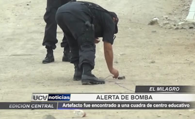 La Policía Nacional recogió un artefacto explosivo desactivado a una cuadra del colegio Julio Gutiérrez del centro poblado El Milagro. El hecho causó zozobra entre los vecinos de la zona.
