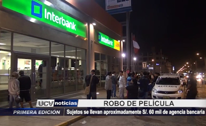Tres encapuchados asaltaron la agencia bancaria Interbank. En segundos encañonaron a las cajeras y clientes. Según las primeras versiones, los maleantes se habrían llevado aproximadamente 60 mil soles.