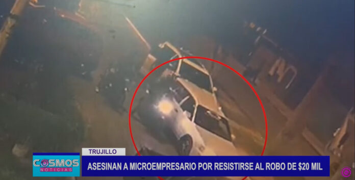 En Trujillo, tal y como se observan en las imágenes grabadas por cámaras de seguridad, Guillermo Bellina, es interceptado por 6 sujetos, quienes iban a bordo de tres motos lineales, tres de ellos ingresan al vehículo y tras notar que el ciudadano pone resistencia le disparan, pero algo que llama la atención en este video, es la actitud del auto blanco que iba delante del microempresario, pues, al parecer sería quien le cierra el pase para quedar acorralado.