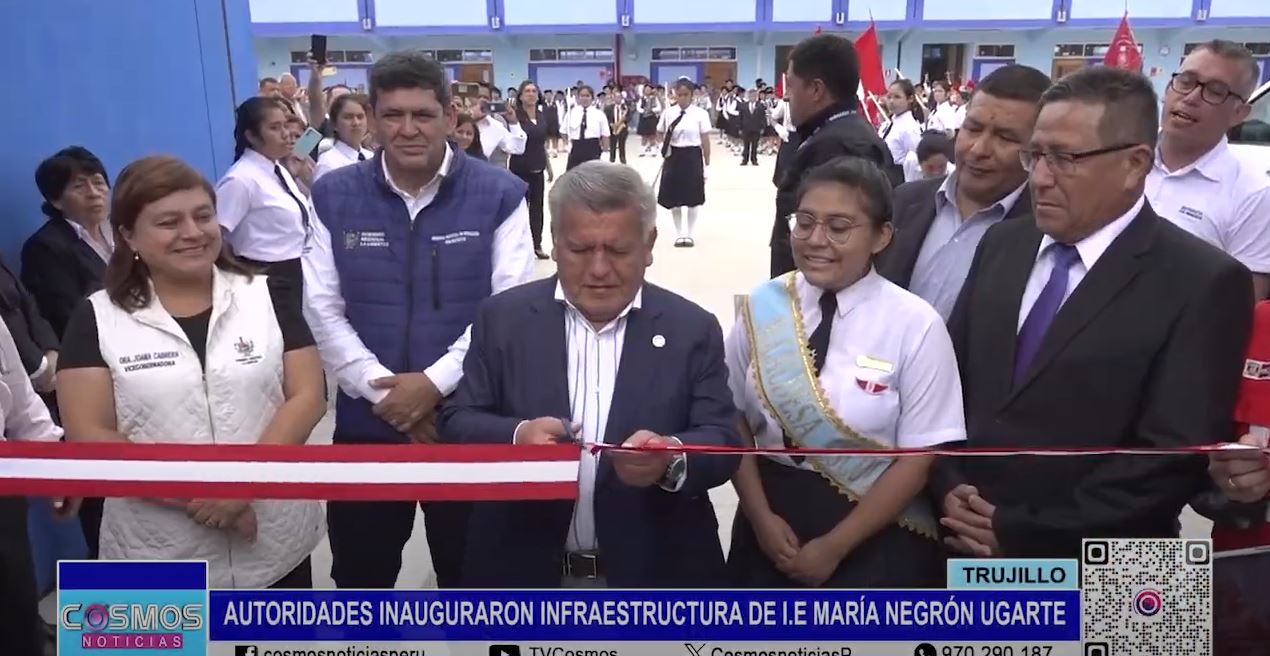 Autoridades regionales llegaron al colegio María Negrón Ugarte para inaugurar la nueva infraestructura, la misma que tomó aproximadamente 3 años para poder ser culminada, esto debido a problemas presentados durante su ejecución. Durante su discurso, el gobernador regional, César Acuña, se comprometió a seguir trabajando en favor de las más de 1300 alumnas que alberga este plantel.
