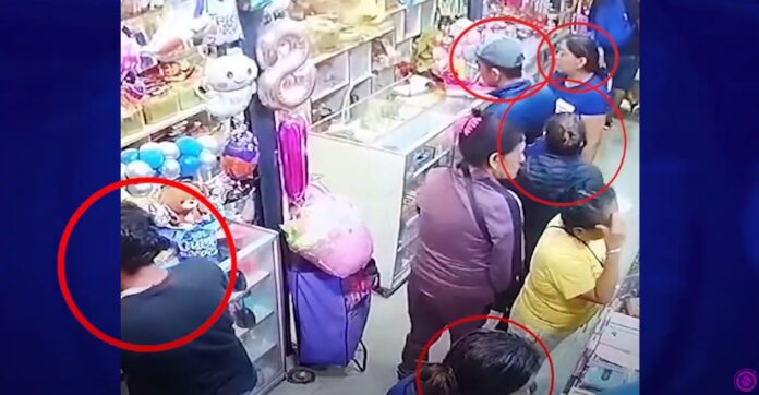 Sujetos continúan asaltando y robando en grupo en tiendas comerciales. En el Emporio Comercial Albarracín, las cámaras de seguridad capturaron a cinco personas involucradas en el robo de un celular.