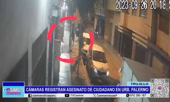 En la urbanización Palermo en Trujillo, sicarios asesinaron a un ciudadano que transitaba por la vía pública. Cámaras registraron este terrible hecho que ha dejado consternados a los vecinos.