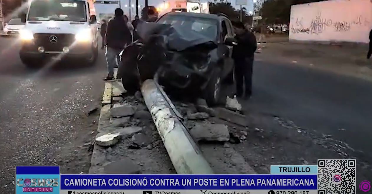 Un accidente de tránsito se registró en la madrugada del miércoles 1 de noviembre en el distrito trujillano de La Esperanza. El accidente ocurrió en plena Panamericana Norte, a la altura de Sedalib. Una camioneta colisionó contra un poste de alumbrado público, lo que generó alarma entre los conductores.