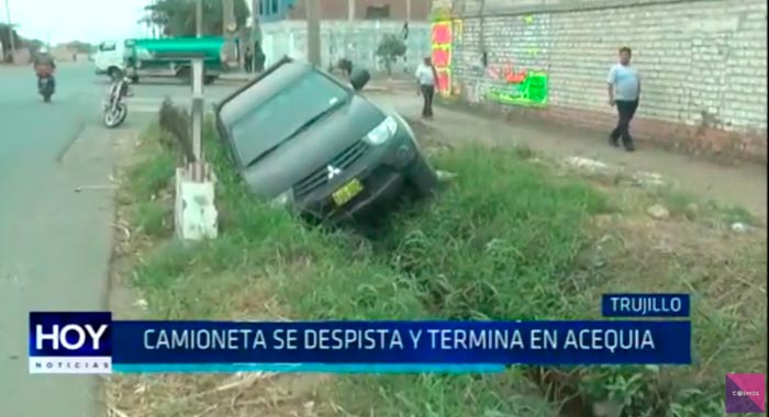 Una camioneta terminó dentro de una acequia luego de despistarse para no chocar frontalmente contra un motociclista. La imprudencia y la velocidad habrían sido las causas.