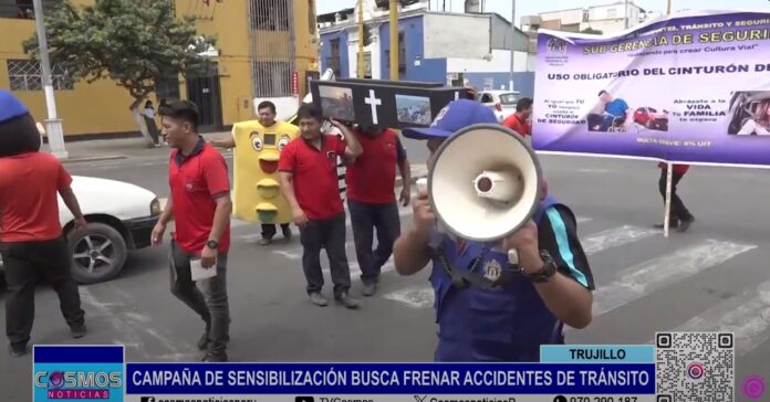 En la intersección de las avenidas España y Ejército, en Trujillo, la Subgerencia de Seguridad Vial de la MPT realizó una campaña de sensibilización en la cual participaron colectiveros, con el fin de prevenir accidente de tránsito.