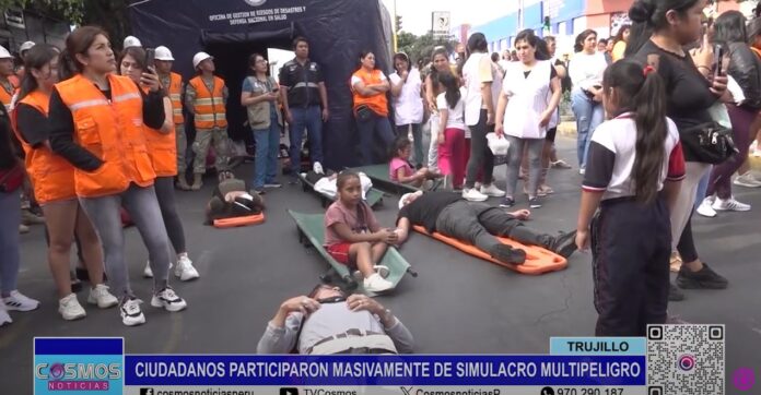 Con una masiva participación, se desarrolló en la ciudad de Trujillo el segundo Simulacro de Sismo Multipeligro, uno de los puntos, fue la avenida España, cuadra 20, donde trabajadores de centros comerciales y transeúntes realizaron el ejercicio de manera activa.