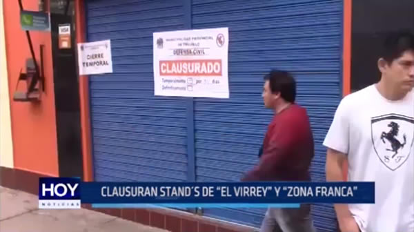 Defensa Civil de la Municipalidad Provincial de Trujillo clausuró stands de los centros comerciales El Virrey y Zona Franca, por no cumplir con las medidas de seguridad requeridas.