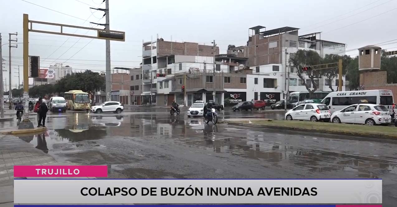 Se registró un aniego que afectó las principales avenidas de la ciudad de Trujillo. La mañana del lunes, el colapso de un buzón de desagüe provocó que la intersección de las avenidas América Oeste y Antenor Orrego se inundara con aguas residuales de olor pestilente.