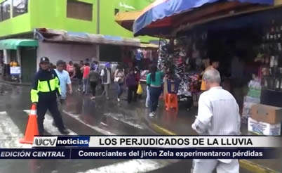 Comerciantes del populoso jirón Zela sufrieron los estragos de la lluvia que se registró en las últimas horas. Charcos de agua, mal olor y pistas dañadas afectaron sus ventas.