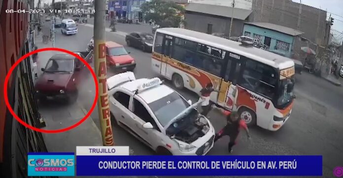 Cámaras de seguridad captaron el preciso instante de un violento accidente ocurrido en la av. Perú, el conductor de una camioneta perdió el control de su unidad, chocando contra un auto que estaba siendo reparado, el mecánico quedó herido producto del golpe.