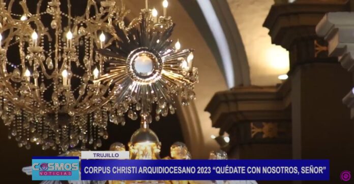 El Arzobispado de Trujillo, anunció en conferencia de prensa la celebración del Corpus Christi arquidiocesano 2023, bajo el lema “Quédate con nosotros, señor”. Esta festividad se realizará el jueves 8 de junio en la plaza de Trujillo desde las 4 de la tarde.
