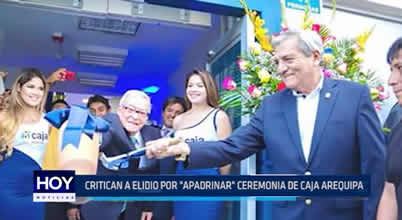 El alcalde Elidio Espinoza apadrinó el local de Caja Arequipa, que inició operaciones en Trujillo. El hecho fue cuestionado, debido a que el burgomaestre es el Presidente de la Junta General de Accionistas de Caja Trujillo.