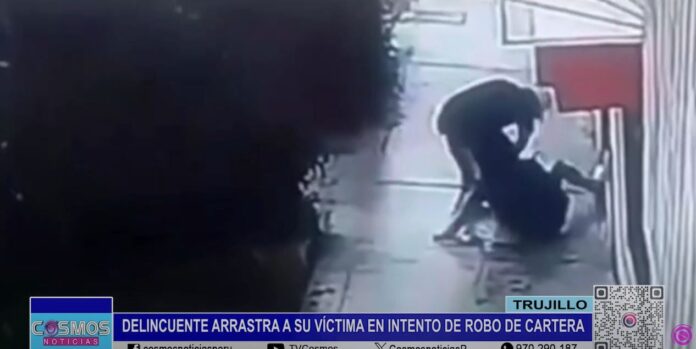 Las cámaras de seguridad captaron a una joven que transitaba por una vereda con su cartera en el brazo derecho, de repente, una mototaxi aparece y se estaciona, de ella baja un delincuente que la sujeta por la espalda y forcejea con la víctima para quitarle sus pertenencias. Sin embargo, la mujer no suelta su accesorio y se aferra a él, siendo arrastrada por la vereda, al ver que es imposible arrebatarle la cartera, el delincuente emprende su huida en la mototaxi que lo esperaba cerca.