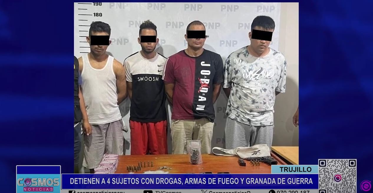 Cuatro sujetos fueron detenidos con drogas, armas de fuego y una granada de guerra, el hecho se registró en el distrito trujillano de La Esperanza. Tras un operativo vía aéreo y terrestres.