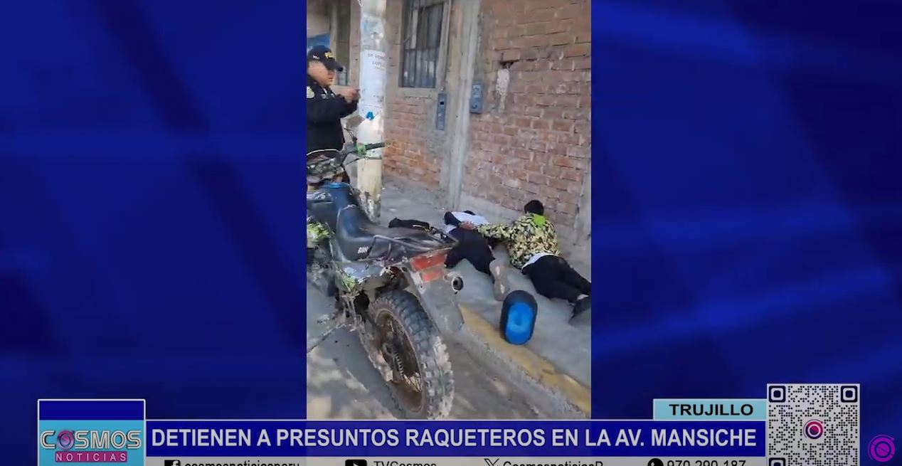 Dos sujetos que se transportaban en una motocicleta sin placa fueron detenidos por la policía de la comisaría El Alambre. Al momento de la intervención, a uno de ellos se le encontró una réplica de arma. Según la policía, estos sujetos se dedicarían al raqueteo en la zona El Cortijo.