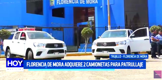 La municipalidad distrital de Florencia de Mora sumará dos camionetas más para las labores de patrullaje preventiva de seguridad ciudadana, tras gestiones en lima el alcalde distrital logró la entrega de ambas unidades que forman parte del equipamiento de la central de monitoreo.