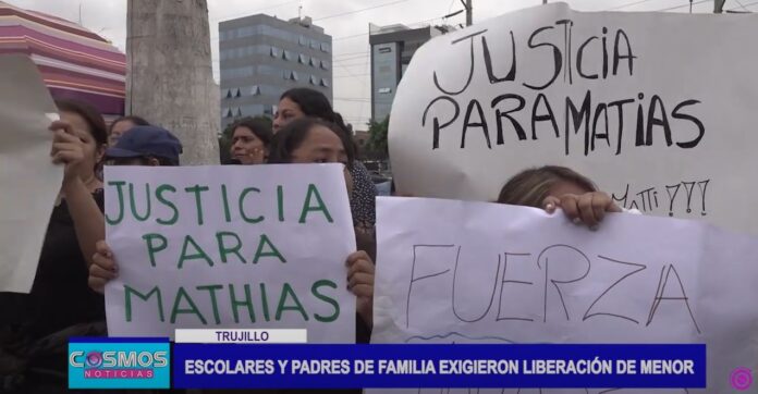 Padres de familia y escolares del colegio La Merced de Laredo, realizaron un plantón en la Corte Superior de Justicia, exigiendo imparcialidad en el caso de adolescente detenido por presunto ultraje sexual a compañera de cuarto grado de secundaria.