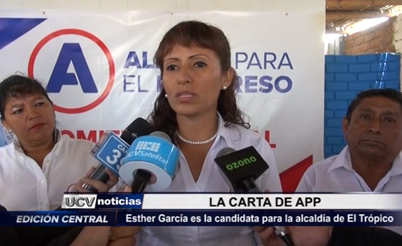 Inicio Actualidad Trujillo: Esther García es la candidata de APP para la alcaldía de... ActualidadNoticiasTrujillo Trujillo: Esther García es la candidata de APP para la alcaldía de El Trópico Por Tv Cosmos - 16/11/2015 589 0 FacebookTwitterPinterestWhatsApp Alianza Para el Progreso presentó a su candidata para la alcaldía del centro poblado El Trópico. Se trata de Esther García. TE PUEDE INTERESAR Si te interesa nuestras noticias, puedes seguir nuestras últimas publicaciones por Facebook, Twitter, y puedes suscribirte aquí a nuestro canal de TUITEA, COMENTA Y COMPARTE Tweets by CosmosNoticiasPe Artículos relacionadosMás del autor NUEVO CONSEJO DIRECTIVO ASUME LA ASOCIACIÓN NUMISMÁTICA Y FILATÉLICA DE TRUJILLO Congreso premiará este martes a ganadores del Concurso Nacional de Fotografía “Mujeres que Inspiran” Alejandro Sanz presenta el video de ‘Rimowa’ en colaboración con Elena Rose POPULAR CATEGORIESNoticias66232Actualidad51007Trujillo42650Nacionales9348Deportes7303Espectáculos4545 NUEVO CONSEJO DIRECTIVO ASUME LA ASOCIACIÓN NUMISMÁTICA Y FILATÉLICA DE TRUJILLO TV COSMOS - 05/03/2026 0 Congreso premiará este martes a ganadores del Concurso Nacional de Fotografía “Mujeres que Inspiran” TV COSMOS - 03/03/2026 0 Alejandro Sanz presenta el video de ‘Rimowa’ en colaboración con Elena Rose TV COSMOS - 23/02/2026 0 Jaze logra su primer sold out en México y consolida su gira internacional TV COSMOS - 23/02/2026 0 Han pasado más de 20 años y la anemia sigue afectando a más del... TV COSMOS - 19/02/2026 0 - Advertisement -
