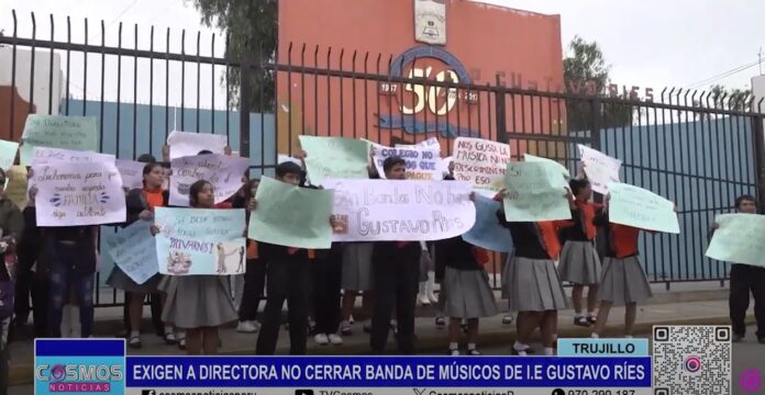 Padres de familia y escolares de la I.E. Gustavo Ríes realizaron un plantón exigiendo que la directora no cierre la banda de músicos, aseguraron que la decisión fue tomada sin un buen fundamento, pese a que son los padres quienes pagan al profesor de banda y compran actualmente los instrumentos.