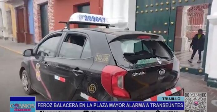 En la Plaza Mayor de Trujillo, la madrugada del lunes, se produjo una feroz balacera que alarmó a transeúntes y taxistas. Pasadas las tres de la madrugada, un sujeto en aparente estado de ebriedad fue intervenido por agentes policiales y utilizó un arma de fuego, lo que provocó una respuesta por parte de la policía.