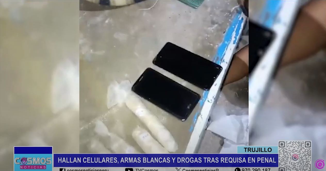Durante la revisión de dichos ambientes, se encontraron 2 equipos celulares, 4 envoltorios en bolsas plásticas que contenían aparentemente pasta básica de cocaína, además de 5 armas punzocortantes.
