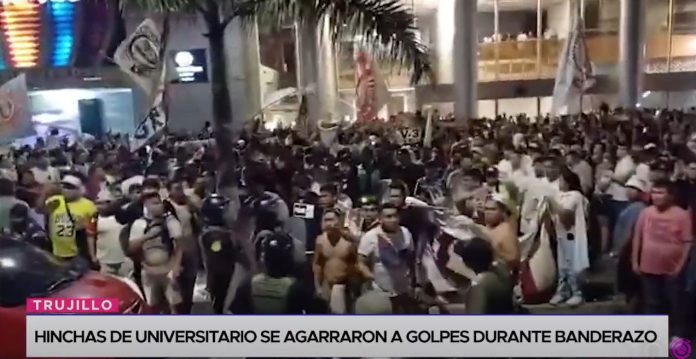 En los exteriores del hotel donde los futbolistas de Universitario de Deportes se hospedaron en Trujillo, hinchas del club ‘crema’ protagonizaron una gresca previa al encuentro contra la Universidad César Vallejo.