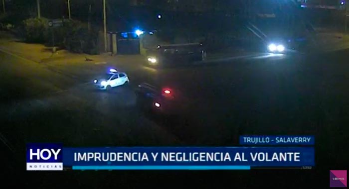 Imprudencia al volante provoca otro accidente vehicular en Moche. Cámaras de seguridad captaron precisos momentos de la colisión. En Trujillo, un auto se incendió por fallas mecánicas.