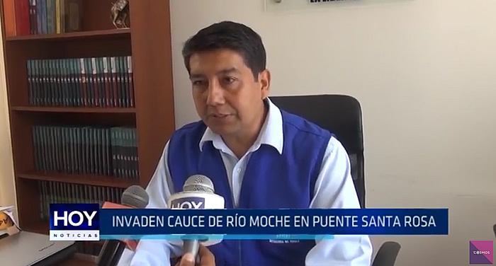Defensoría del pueblo denuncia que una empresa constructora invade el cauce del río Moche, cerca del puente Santa Rosa, poniendo en riesgo a la población aledaña.