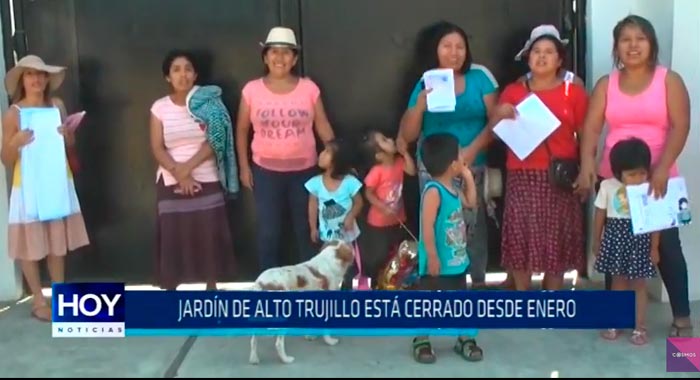 Padres de familia del jardín estatal “Adita Zannier de Murgia” ubicado en Alto Trujillo denuncian que esta institución permanece cerrada desde enero y no pueden matricular a sus hijos ni realizar ningún tramite debido a que la directora está de vacaciones.
