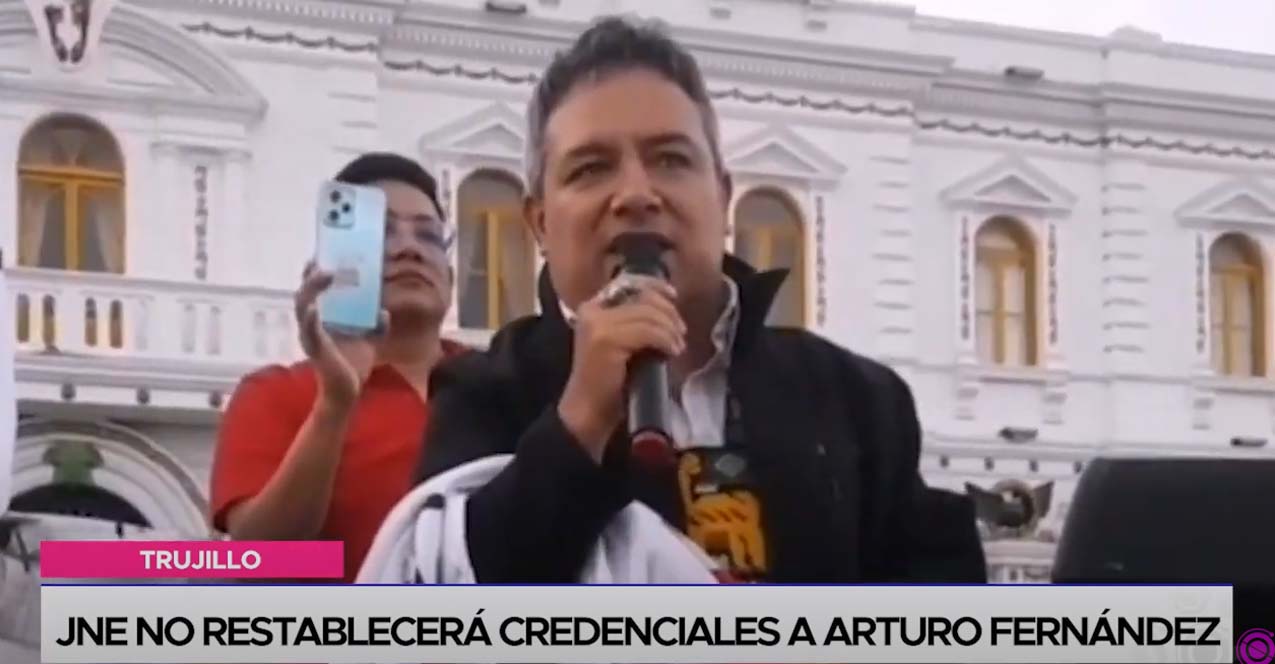 No volvería hasta el 2025. El Jurado Nacional de Elecciones rechazó el pedido del suspendido alcalde de Trujillo, Arturo Fernández, para el restablecimiento de vigencia de su credencial como autoridad. Mediante Resolución N.°0180 – 2024 el organismo electoral declaró infundada su solicitud.