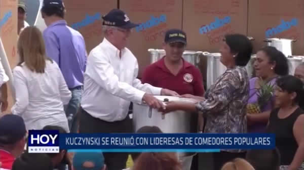 El presidente de la República, Pedro Pablo Kuczynski, entregó cocinas, ollas y balones de gas a representantes de los comedores populares afectados por los huaicos.