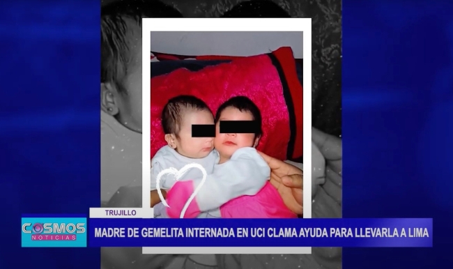 Una madre de familia clama ayuda a las autoridades para que una de sus gemelitas de cuatro meses de nacida internada en el hospital Belén, en la ciudad de trujillo, sea trasladada al hospital de Breña en Lima y puedan primero combatir la neumonía que padece para después ser operada de una patología al corazón.