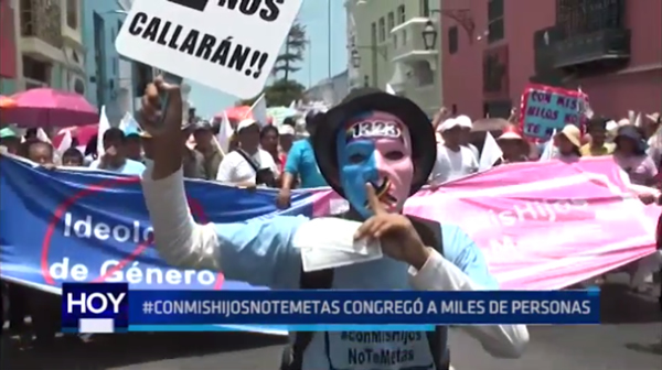 La marcha “Con mis hijos no te metas” tuvo una masiva participación en las inmediaciones de la Plaza Mayor. Cientos de personas protestan contra lo que consideran ideología de género que, supuestamente, promueve el Gobierno Central.