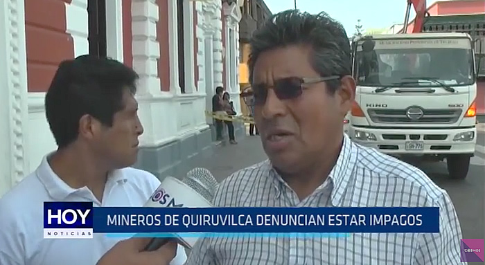 Mas de 380 mineros denuncian estar impagos por parte de empresa minera Quiruvilca. Ellos dan ultimátum a cuestionada empresa, caso contrario iniciarán medidas radicales.