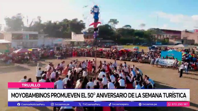 Con gran entusiasmo, turistas procedentes de Moyobamba visitaron el centro histórico de Trujillo para compartir su cultura y promover las actividades programadas para las próximas semanas en su ciudad natal, como parte de la celebración del 50° aniversario de la Semana Turística.