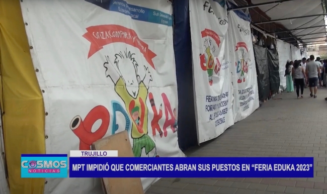 Este miércoles en horas de la mañana, personal de la Municipalidad Provincial de Trujillo llegaron hasta la «Feria Escolar Educa 2023» para obligar a los comerciantes a no abrir los 90 puestos instalados al costado de la Concha Acústica.