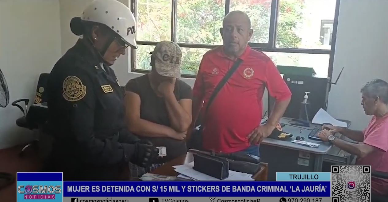 En la provincia de Trujillo, la Policía Nacional capturó a una mujer que tenía en posesión 15 mil soles, dinero que presuntamente proviene de cupos extorsivos. También se le incautó stickers de una banda criminal.