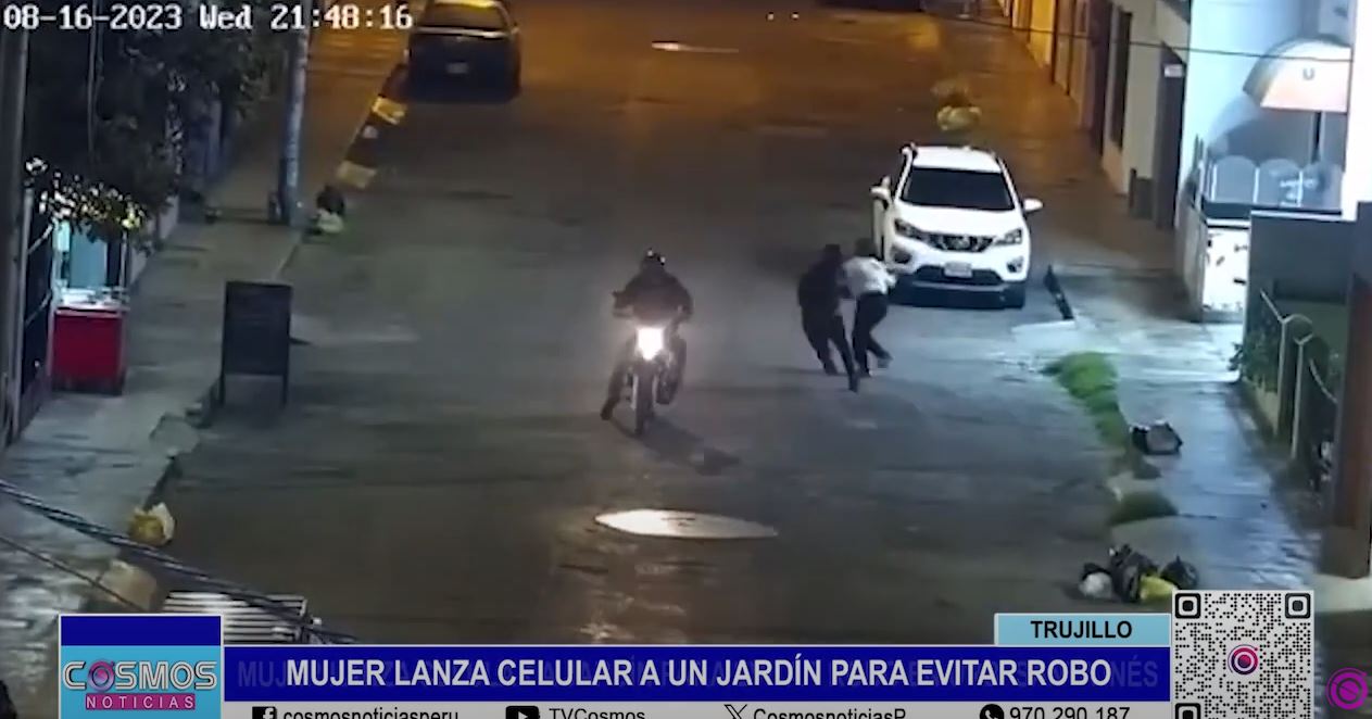 Las calles de la ciudad de Trujillo siguen siendo inseguras. En la Urbanización Santa Inés, dos delincuentes intentaron robar a una transeúnte. Sin embargo, la ciudadana logró percatarse a tiempo y lanzó su celular, evitando así el robo.