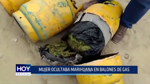 Una mujer encargada de trasladar droga de Trujillo a Chimbote fue detenida en poder de 13 kilos de marihuana que ocultaba en tres balones de gas.