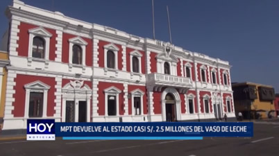 La Municipalidad de Trujillo devolvió al Ministerio de Economía casi dos millones y medio del presupuesto asignado para el programa del Vaso de Leche durante los años de gestión del alcalde Elidio Espinoza.
