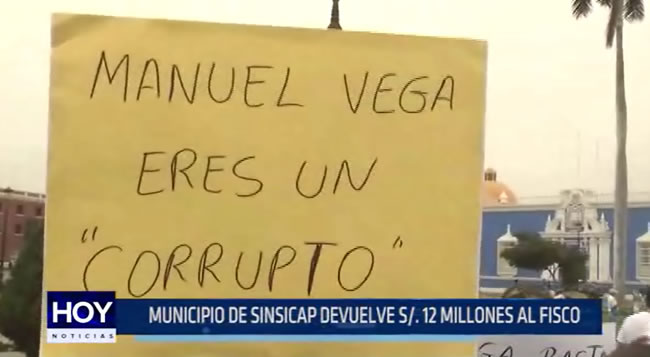 Un grupo de pobladores del distrito de Sinsicap, llegó a la Plaza Mayor para denunciar al alcalde, Manuel Vegas de cometer irregularidades y abusos en su gestión.