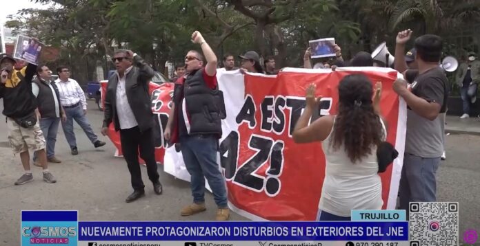 Totalmente eufóricos, con carteles y banderolas en mano, ciudadanos nuevamente llegaron hasta el Jurado Nacional de Elecciones para expresar su incomodidad por la gestión del alcalde provincial de Trujillo, Arturo Fernández. Ellos piden su destitución, ya que aseguran no está realizando un buen trabajo.