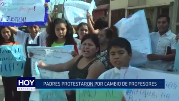 Padres de familia y alumnos del centro educativo Abraham Valdelomar protestaron en la sede de la UGEL N° 4 exigiendo que se deje sin efecto la rotación de tres docentes.